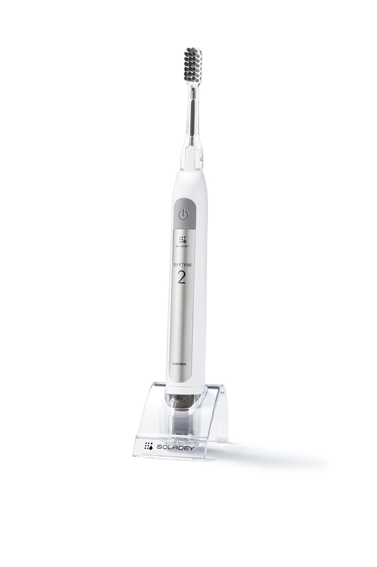 ソラデーリズム SOLADEY RHYTHM 2 (スノーホワイト) 電動歯ブラシ(ハニカムP)ふつう 音波振動 TiO2半導体/ソーラーパネル内蔵 (シケン)