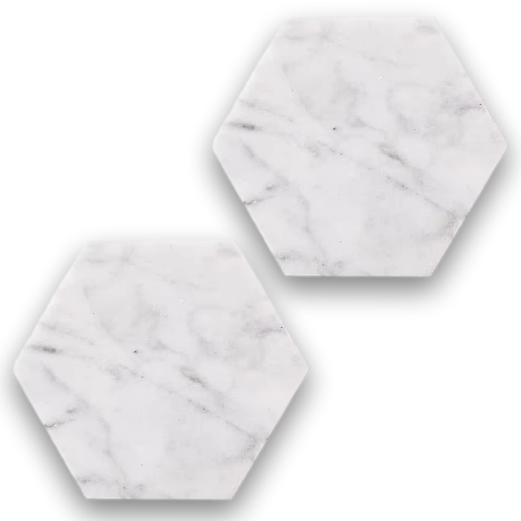 tomtask 大理石コースター 2枚セット 大理石プレート 10cm 天然石 トレー 小物置き アクセサリー 多機能 トレイ 石 ジュエリープレート カビない 六角形 (白 ホワイト)