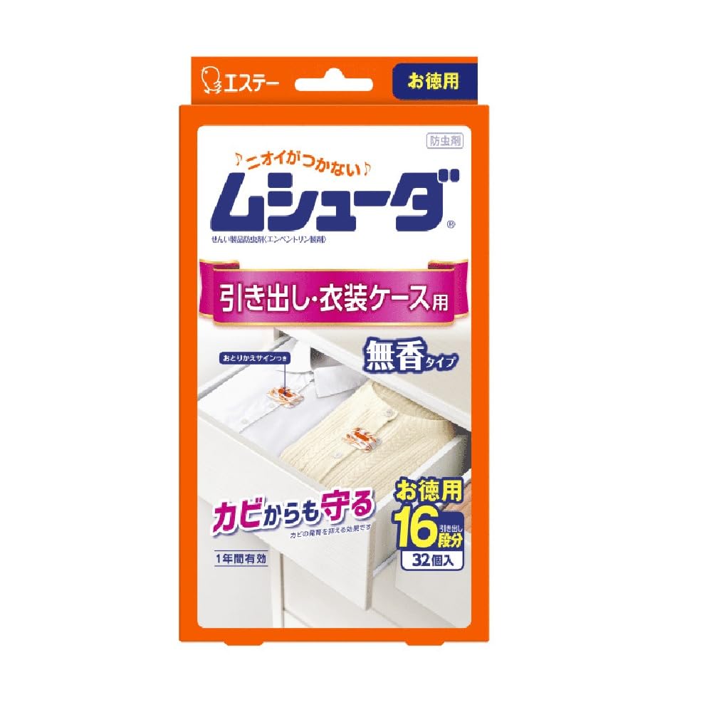 【まとめ買い】ムシューダ 1年間有効 防虫剤 引き出し・衣装ケース用 32個入【×2個】