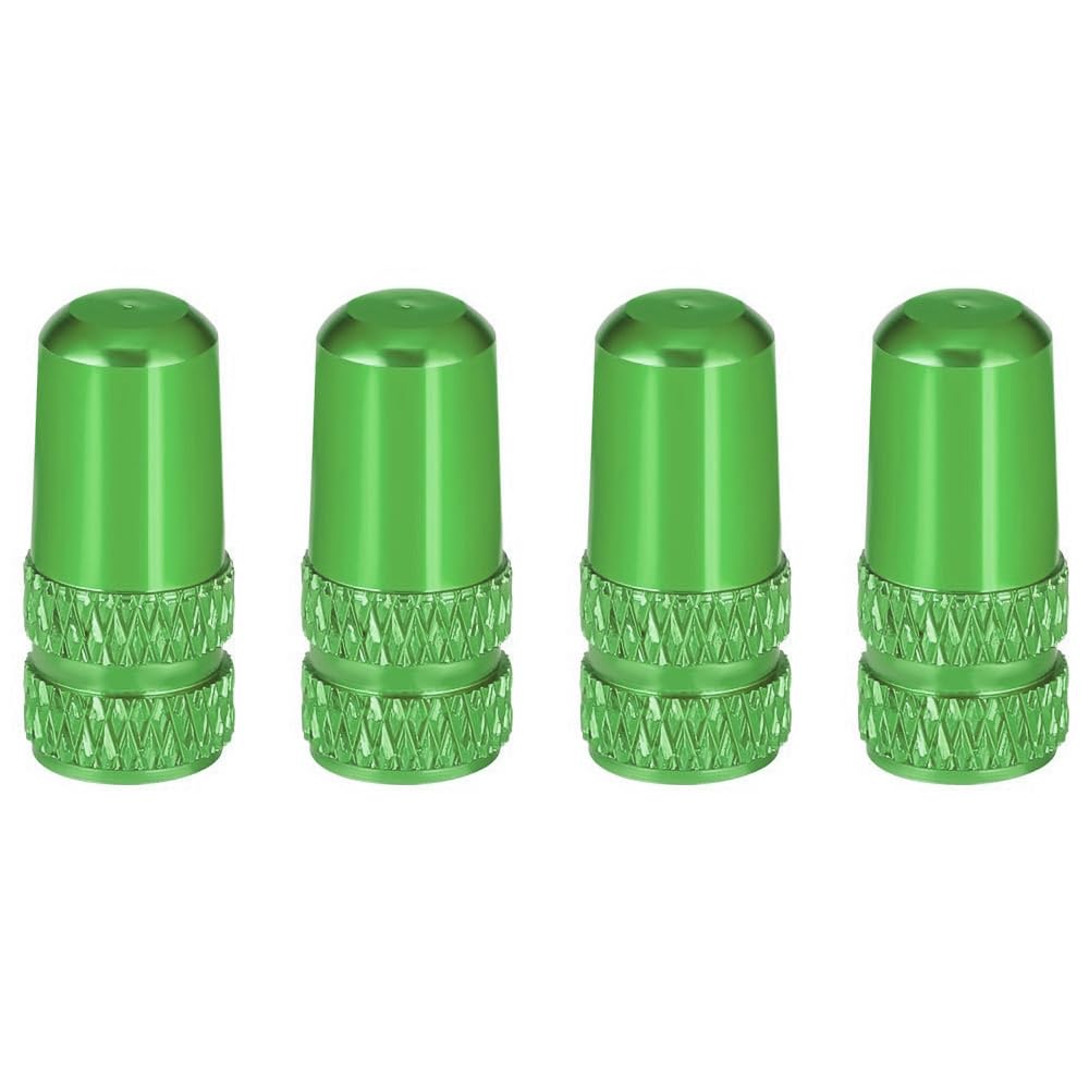 YFFSFDC 自転車 仏式 バルブキャップ 4個セット アルミ合金製 タイヤ バルブ キャップ アルミバルブキャップ フレンチバルブ ロードバイク ドレスアップ 仏式バルブ用 (グリーン)
