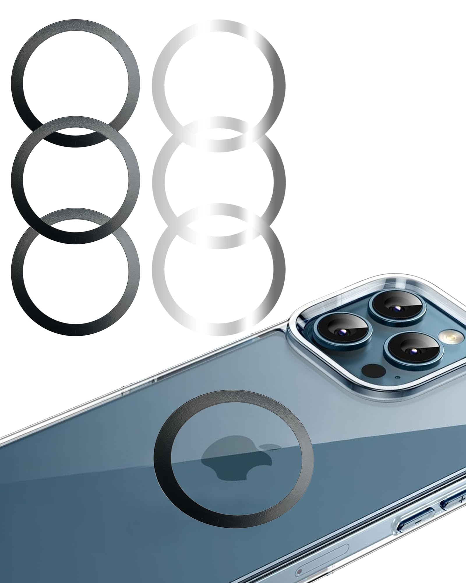 Aothey Magsafe シール リング 超薄型 Magsafe互換 マグセーフシール付き 通用 Magsafeアクセサリー対応 磁気増強 ワイヤレス充電対応 3個ブラック + 3個シルバー