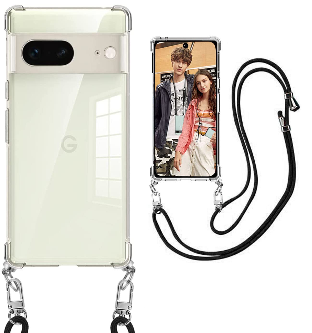 weiaoluo google Pixel 7 ケース クリア ショルダー 透明 TPU ピクセル 7 スマホケース 耐衝撃 ストラップ付き 織りストラップ付き スマートフォン ケース ネックストラップ ケース ショルダー ストラップ 調節可能な ショルダー クロスボディ ネックレス 保護ソフト薄型 軽量 肩がけ 首掛け 紐付きバンパー 斜めかけケース 衝撃吸収(クリア)