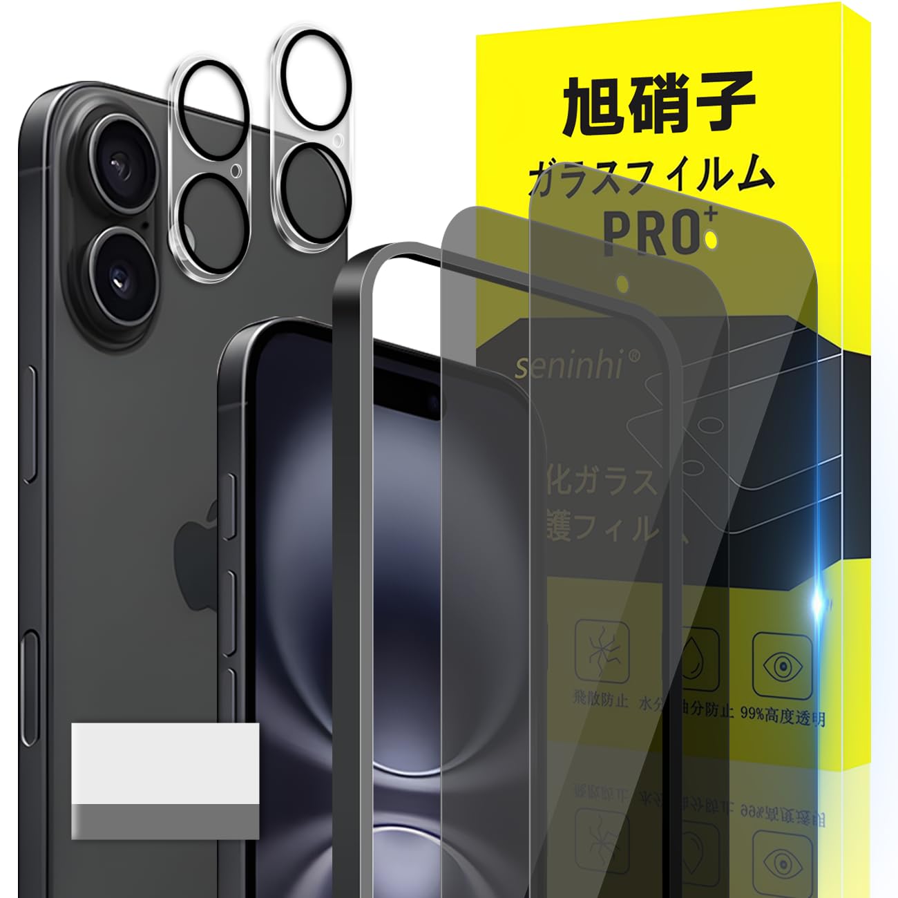 対応 iPhone iphone16 ガラスフィルム apple iphone16 ガイド枠付き 指紋防止 【2*覗き見防止 フィルム+2* レンズ保護フィルム+ 1*ガイド枠付き】国産旭硝子材質 アイフォン16 薄型 強化ガラス iphone16 保護フィルム 高光沢 いpほね16 液晶 あいほん16 ガラス Touch対応 SENXLL-16F05