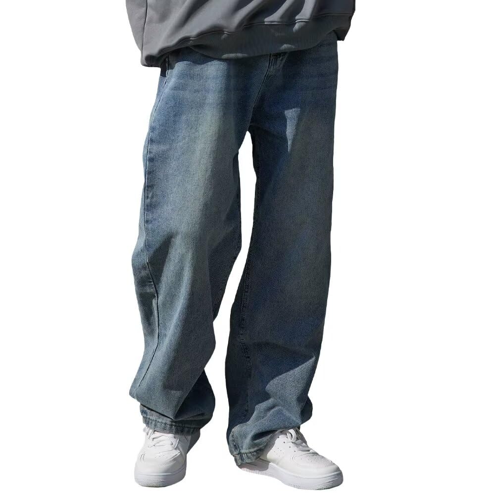 [Fuyumoe] ジーンズ メンズ ワイド デニムパンツ メンズ ズボン ワイド ジーパン 大きいサイズ ゆったり ルーズ イージー (ヴィンテージ ブルー L)