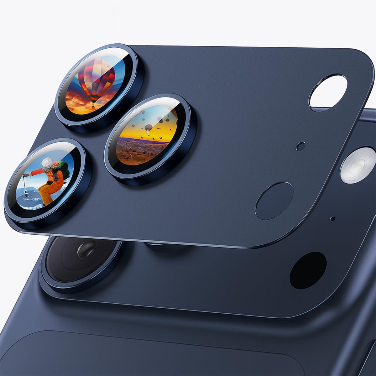 Jurqqer いfor iphone 17 Pro カメラ保護 全面保護 9Hサファイアガラス&航空用アルミ合金製 防指紋 高透過率防傷 耐衝撃 露出オーバー防止 -for iPhone 17 Pro専用 ダークブルー
