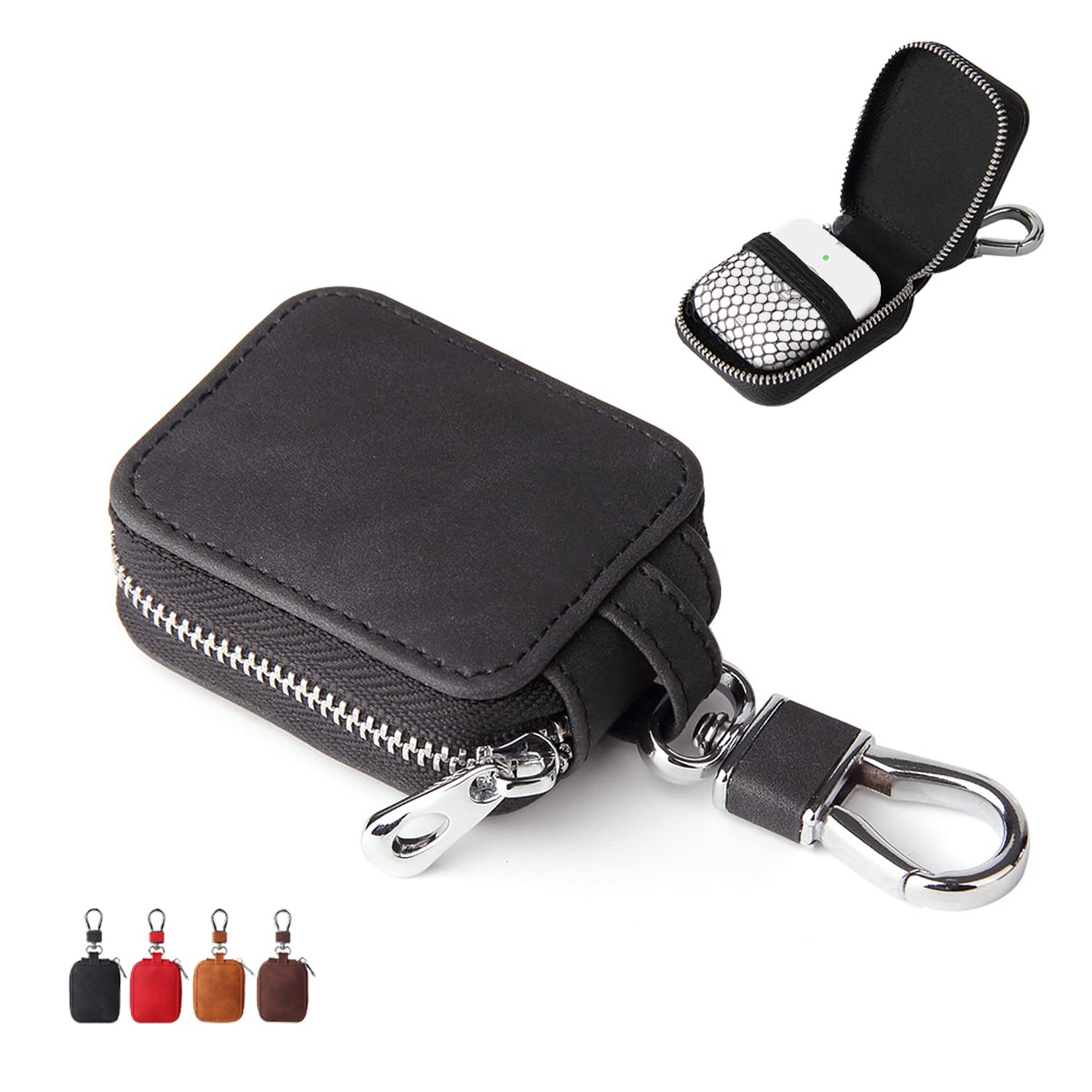 For MIXI「みてねみまもりGPSトーク」 / みてねみまもりGPS 第2世代/第3世代」用 ケース カバー 収納袋 カラビナ付き 紛失を防ぐ 【NOUKAJU】 GPSトラッカー ケースカバー 落下防止 軽量 キズ防止 防震 防塵 耐衝撃 傷つきにくい (ブラック 黒)