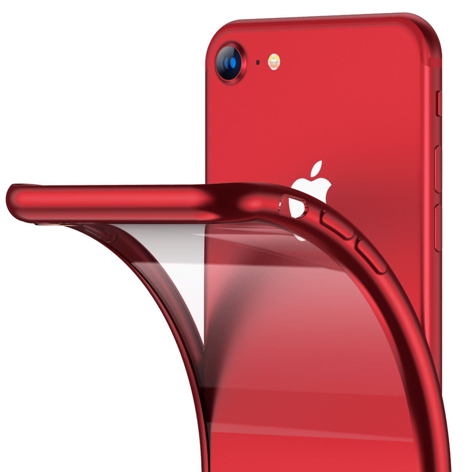 ORANGA iPhone SE 用 ケース 第3世代 2022 5G iPhoneSE ケース 第2世代 iPhone8 / 7用 ケース 透明 ソフトTPU メッキ加工 クリア 薄型 軽量 耐衝撃 黄ばみなし レンズ保護 4.7インチ アイフォンSE3 SE2 7 8カバー レッド