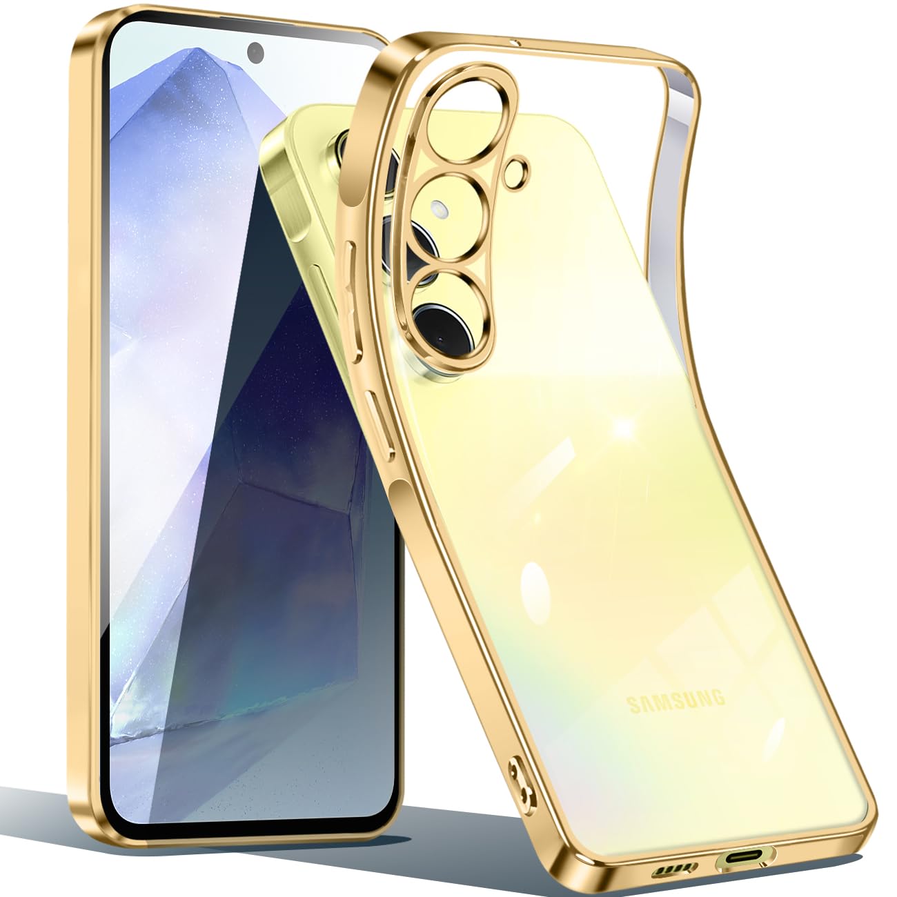 Galaxy A55 5G ケース クリア ギャラクシー a55 5G スマホケース 透明 TPU 薄型 軽量 耐衝撃 メッキ加工 ソフトケース 人気 保護カバー (ゴールド)