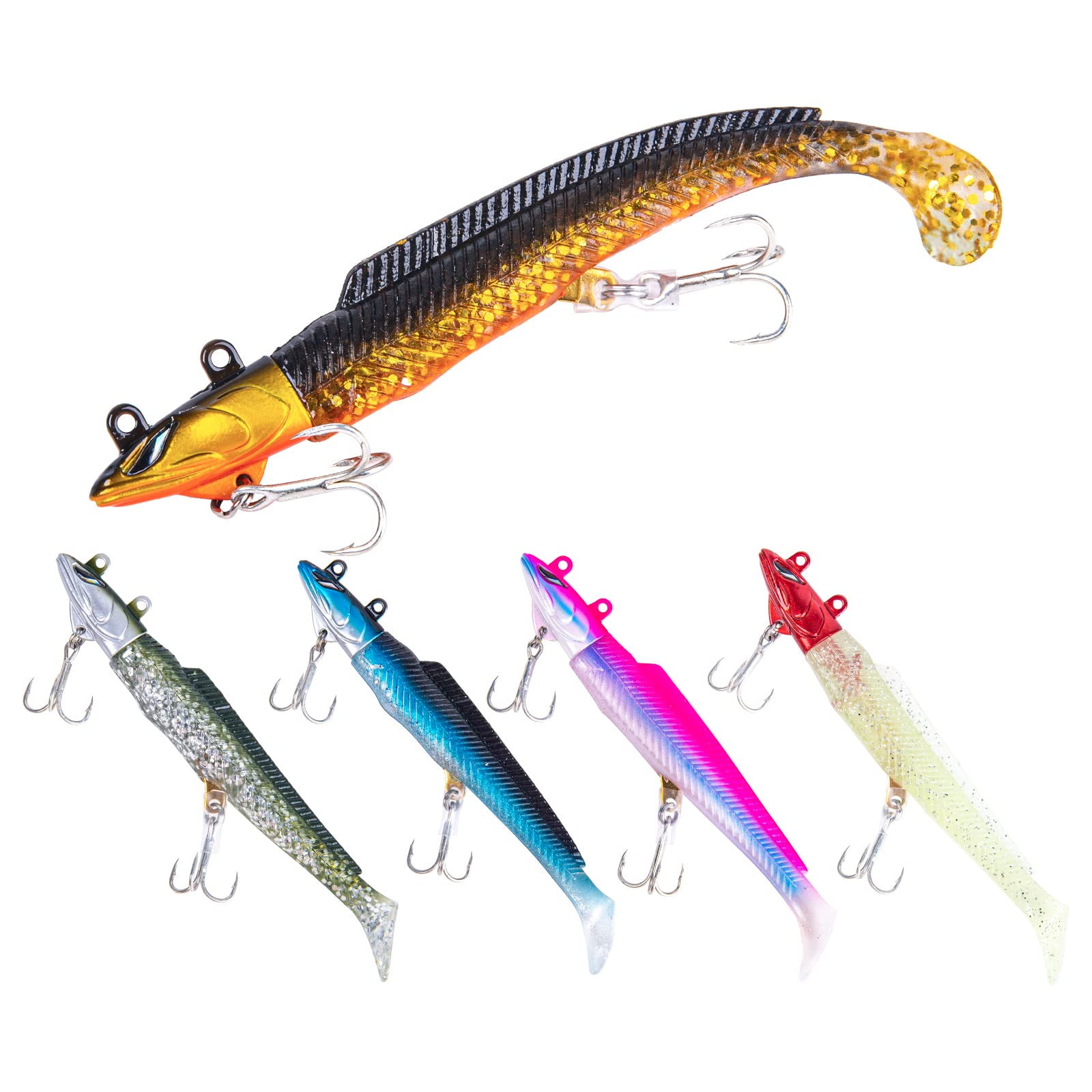 Goture(ゴチュール) ヒラメセット ジグヘッド トレブルフック付き ワーム ソフトルアー シーバス ヒラメ タチウオ カサゴ 青物 淡水・海釣り両用 18g/21g/28g 5本/10本/15本セット
