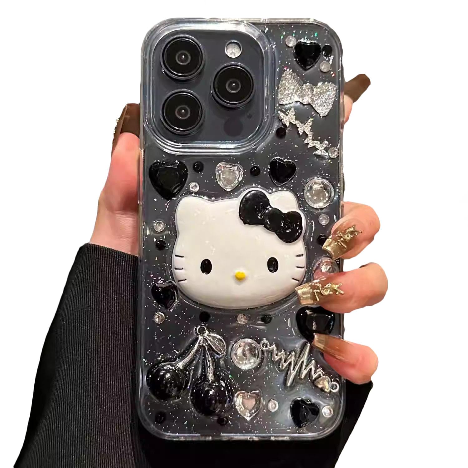 [KINUNTOP]透明スマホケース iphone12 用 ケースさくらんぼ 可愛いキティちゃん韓国 かわいい人気 おしゃれ シンプル キラキラ ラインストーン付き 携帯カバー携帯ケース 軽量 耐衝撃
