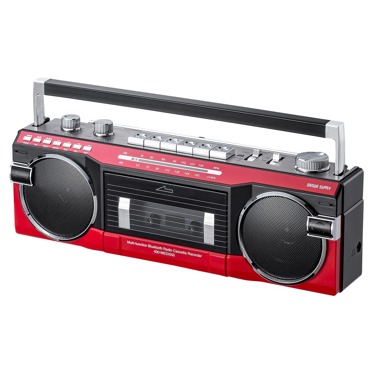 サンワダイレクト Bluetooth搭載 ラジカセ MP3変換 デジタル化 USBメモリ/SDカード MP3プレーヤー ラジオ 乾電池/AC電源 マイク内臓 録音機能付き カセットテープ テープレコーダー レッド 400-MEDI050R