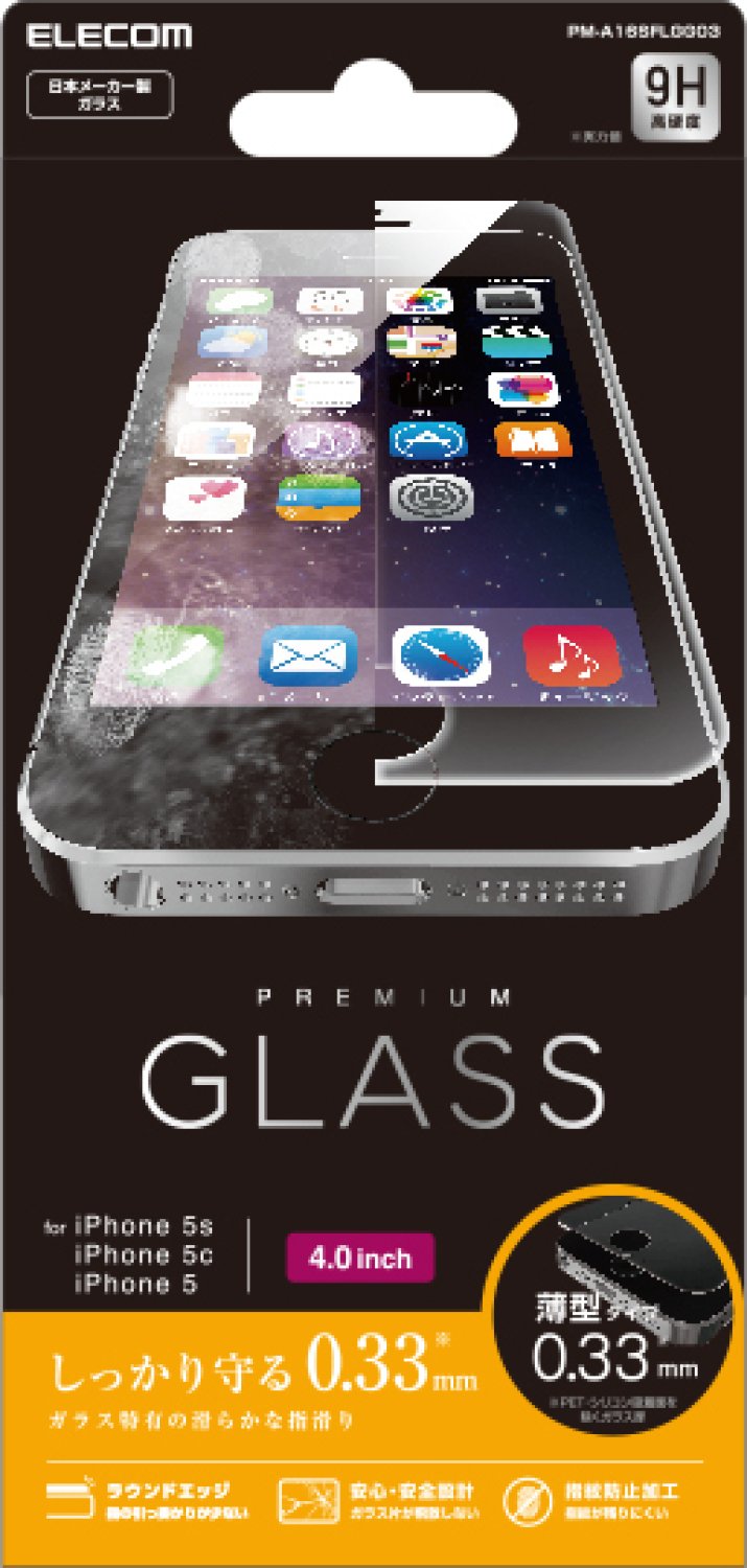 ELECOM iPhone SE/5S ガラスフィルム 【0.33mm 最高硬度9H ラウンドエッジ加工 指紋防止コーティング 飛散防止設計】PM-A16SFLGG03 PM-A16SFLGG03
