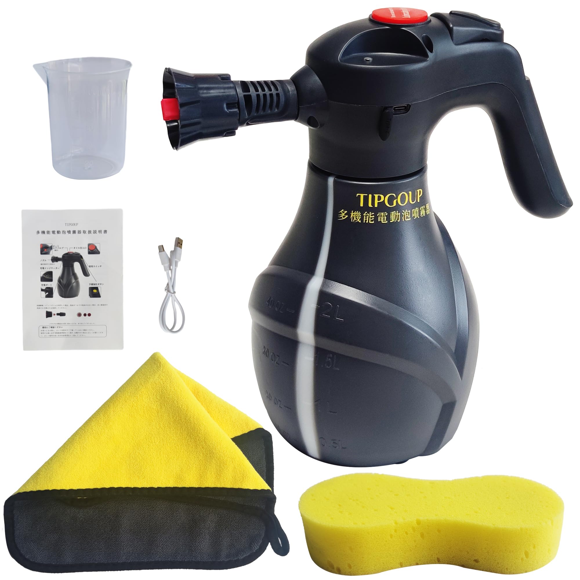 電動フォームガン 洗車 フォームガン 車 バイク 泡洗車 洗車用品 洗車セット PSE認証取得 2L大容量 多機能電動噴霧器 USB充電式電動蓄圧式発泡スプレー コードレス 日本語説明書 付属品付き
